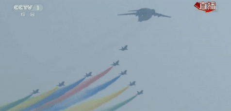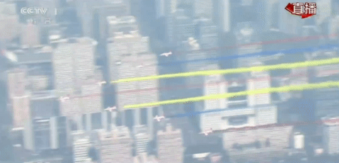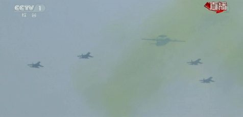 領(lǐng)隊機梯隊:七道彩煙為新中國慶祝生日。