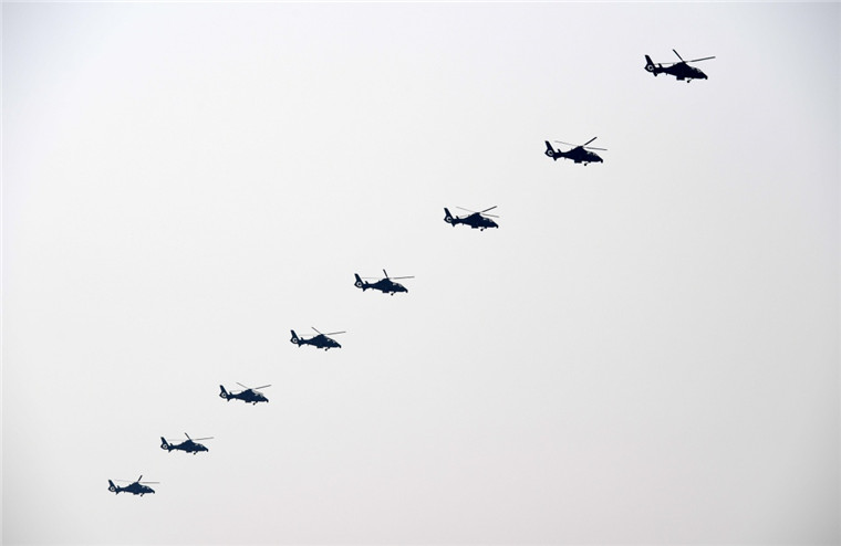 涵蓋陸軍航空兵現(xiàn)役所有主戰(zhàn)裝備的陸航突擊梯隊掠過天安門廣場上空,剛剛列裝部隊的直-20直升機首次公開亮相。