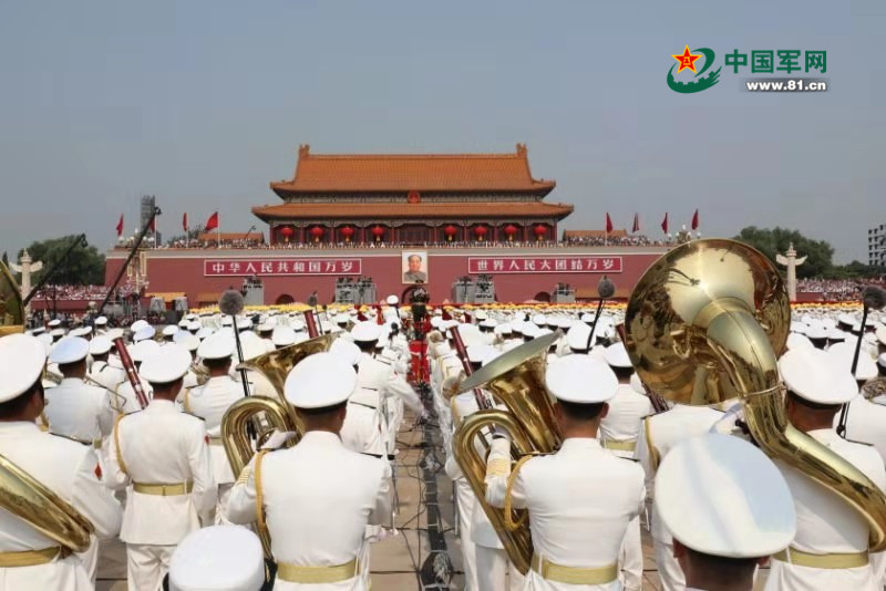 當(dāng)年,正是毛澤東等老一輩革命家領(lǐng)導(dǎo)的各路起義軍,唱著軍歌把刀槍投向敵人,“一唱雄雞天下白”,開(kāi)啟了嶄新歷史紀(jì)元。1949年10月1日,開(kāi)國(guó)大典上,毛主席按動(dòng)電鈕,新中國(guó)第一面鮮艷五星紅旗,伴隨雄壯的《義勇軍進(jìn)行曲》,在天安門(mén)廣場(chǎng)冉冉升起。這雄壯的旋律,就是與新中國(guó)一同誕生的解放軍聯(lián)合軍樂(lè)團(tuán),在新中國(guó)奏響的第一首曲子。今年10月1日,是新中國(guó)的生日,也是解放軍聯(lián)合軍樂(lè)團(tuán)的生日。當(dāng)天,他們第16次在國(guó)慶大典上奏響《義勇軍進(jìn)行曲》。70年初心不改,70年薪火相傳,他們是壯麗祖國(guó)光榮的見(jiàn)證者。