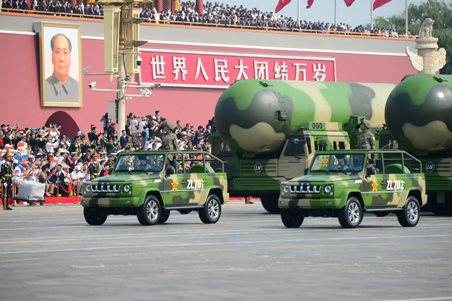 東風-41核導彈方隊接受檢閱(孫利 攝)