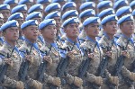 頭戴藍(lán)色貝雷帽、胸佩藍(lán)色絲巾的維和部隊(duì)方隊(duì),1日作為最后一支徒步方隊(duì)經(jīng)過(guò)天安門(mén),首次在國(guó)慶閱兵中接受檢閱。軍事