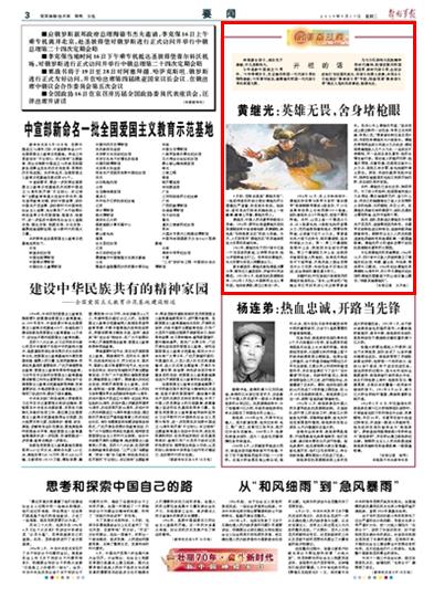 家鄉(xiāng)解放后,黃繼光參加清匪反霸斗爭,曾當過兒童團團長,并被評為民兵模范。1951年3月,他參加抗美援朝戰(zhàn)爭,1952年7月加入中國新民主主義青年團。他作戰(zhàn)勇敢,榮立三等功一次。