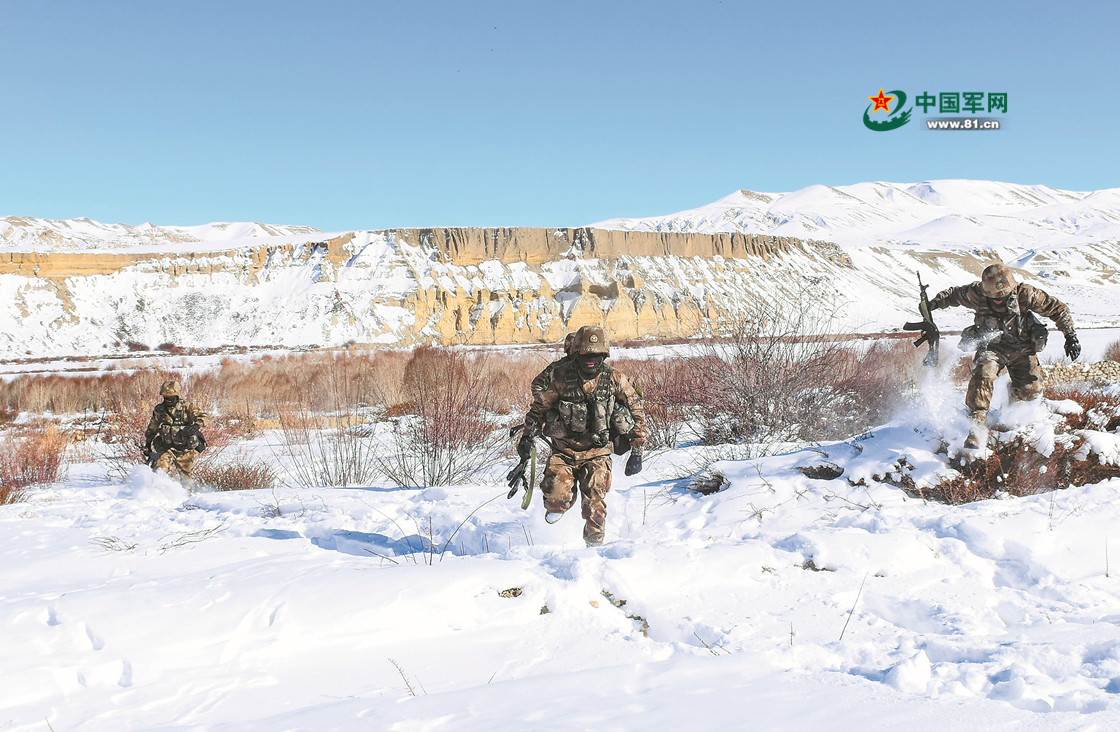 “全班注意,一組中,二組左,三組右,前方10米處占領進攻出發(fā)陣地……”2月18日,駐守在喜馬拉雅山脈腹地的陸軍某邊防團官兵踏著皚皚白雪,迎著刺骨寒風,在茫茫雪野展開戰(zhàn)術、體能等課目訓練。