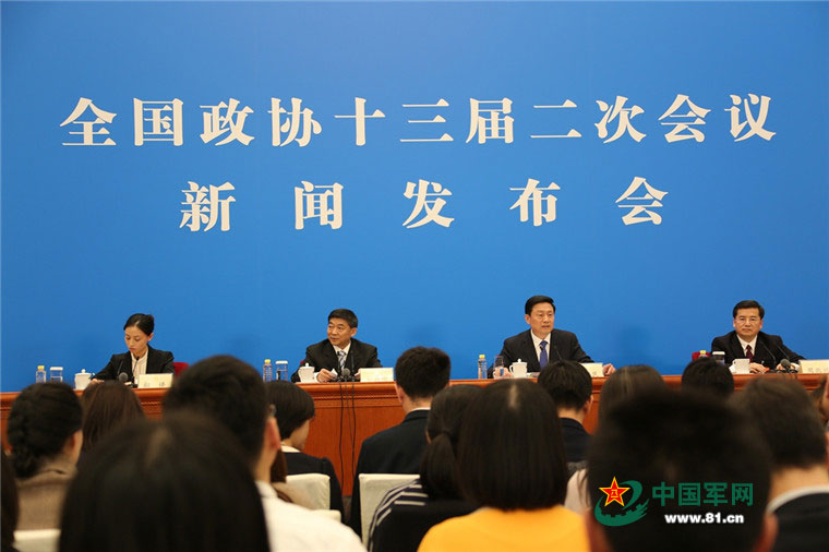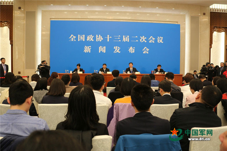 3月2日下午,全國(guó)政協(xié)十三屆二次會(huì)議新聞發(fā)布會(huì)在北京人民大會(huì)堂舉行,大會(huì)新聞發(fā)言人郭衛(wèi)民介紹會(huì)議有關(guān)情況并回答中外記者提問(wèn)。中國(guó)軍網(wǎng)記者 孫智英 攝