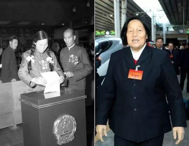(圖左)1954年,全國(guó)人大代表申紀(jì)蘭參加第一屆全國(guó)人大第一次會(huì)議。(新華社記者曹興華攝) (圖右)2017年3月12日,全國(guó)人大代表申紀(jì)蘭抵達(dá)北京西站。(新華社記者陳建力攝)