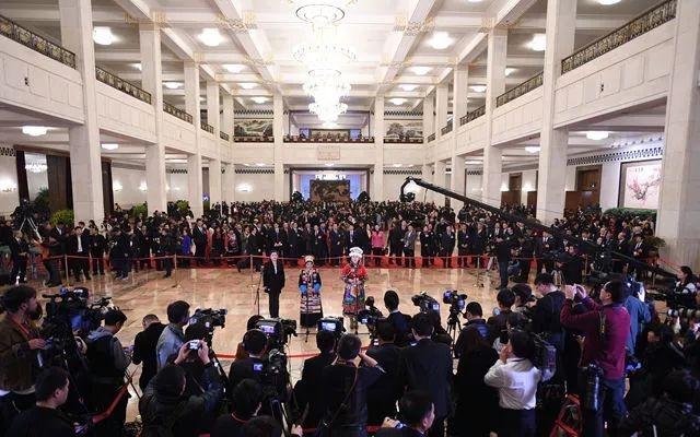 2016年3月16日,第十二屆全國(guó)人民代表大會(huì)第四次會(huì)議在北京人民大會(huì)堂舉行閉幕會(huì)。記者在人民大會(huì)堂部長(zhǎng)通道采訪。 (新華社記者王建華攝)2018年全國(guó)兩會(huì)首設(shè)“代表通道”