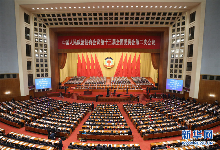 大會首先審議通過了政協(xié)第十三屆全國委員會第二次會議議程。