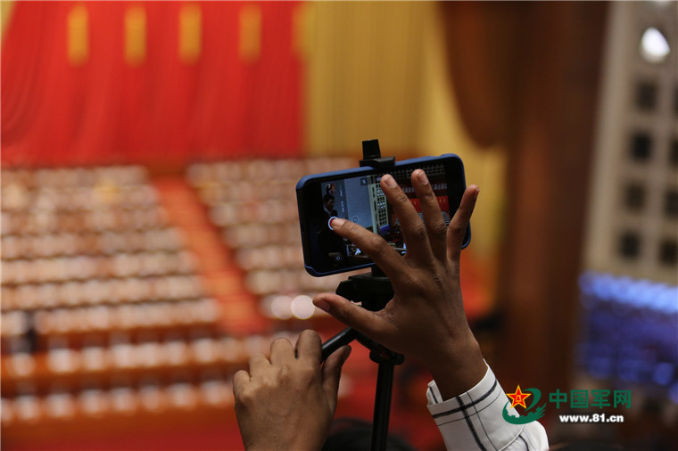 3月3日下午,全國(guó)政協(xié)十三屆二次會(huì)議在北京人民大會(huì)堂開(kāi)幕。這是外媒記者利用手機(jī)進(jìn)行采訪拍攝。中國(guó)軍網(wǎng)記者 孫智英 攝