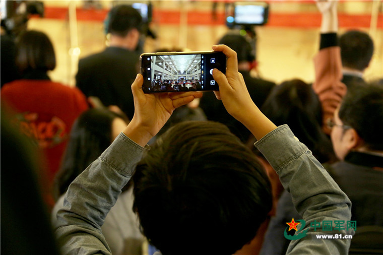 3月2日下午,全國(guó)政協(xié)十三屆二次會(huì)議新聞發(fā)布會(huì)在北京人民大會(huì)堂舉行。這是新聞發(fā)布會(huì)結(jié)束后記者拿出手機(jī)拍攝發(fā)言人近照。中國(guó)軍網(wǎng)記者 孫智英 攝