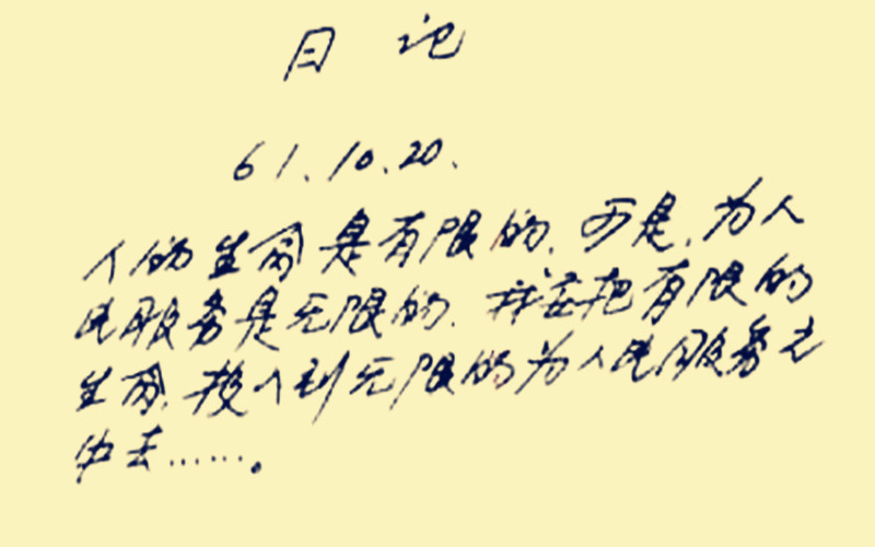 有些人就不理解了,雷鋒為什么總這么“正能量”?積極上進得讓人羨慕嫉妒恨。雷鋒在聊天中主動解開戰(zhàn)友們的疑惑,也在工作之余的日記中記下一筆:一個人的作用,對于革命事業(yè)來說,就如一架機器上的一顆螺絲釘。機器由于許許多多的螺絲釘?shù)穆?lián)結(jié)和固定,才成為一個堅實的整體,才能夠運轉(zhuǎn)自如,發(fā)揮它巨大的工作能力。螺絲釘雖小,其作用是不可低估的。我愿永遠做一個螺絲釘。這是他最真實的心聲,是夜深人靜時自然的流露與表達。