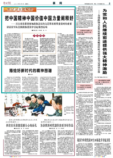 ——習(xí)主席在看望參加政協(xié)會議的文藝界社科界委員時(shí)的重要講話在軍隊(duì)全國政協(xié)委員中引起強(qiáng)烈反響