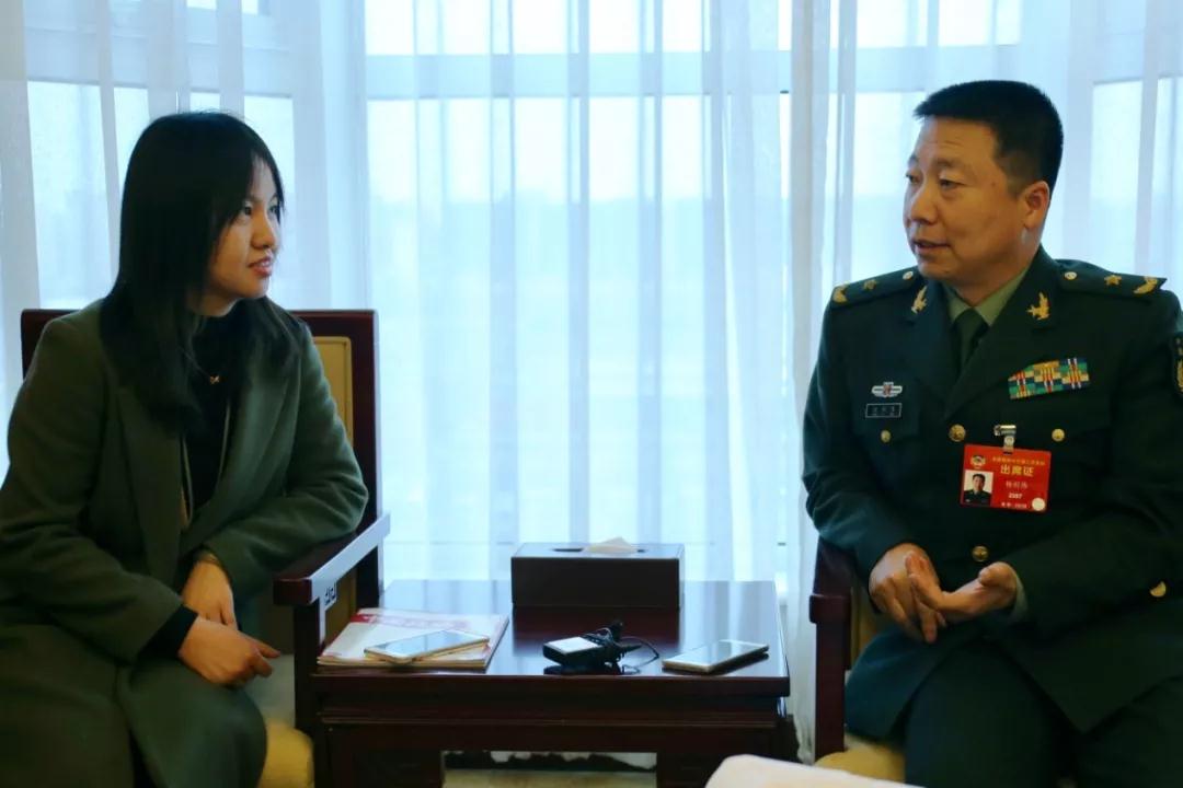 中國軍網(wǎng)記者采訪楊利偉委員。中國軍網(wǎng)記者 孫智英 攝