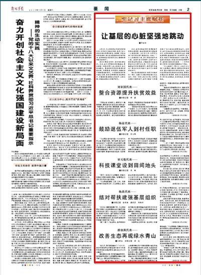 “史書(shū)記,看新聞聯(lián)播了吧,習(xí)主席講到鄉(xiāng)村振興,還講到要強(qiáng)化農(nóng)村基層黨組織領(lǐng)導(dǎo)作用,我們一定會(huì)牢記習(xí)主席的囑托,和咱們村黨員一道打造強(qiáng)有力的基層黨組織,為脫貧致富加油助力。”3月8日晚,新聞聯(lián)播剛結(jié)束,來(lái)自陸軍某集團(tuán)軍的楊磊代表就打起了電話。