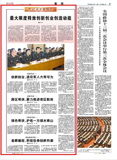 作為一名老兵,何雷代表一直關(guān)注著退役軍人就業(yè)問題。此前他就注意到,政府工作報(bào)告提到“扎實(shí)做好高校畢業(yè)生、退役軍人、農(nóng)民工等重點(diǎn)群體就業(yè)工作,加強(qiáng)對(duì)城鎮(zhèn)各類就業(yè)困難人員的就業(yè)幫扶”,他用紅筆在“退役軍人”4個(gè)字下面用線條做了標(biāo)注。