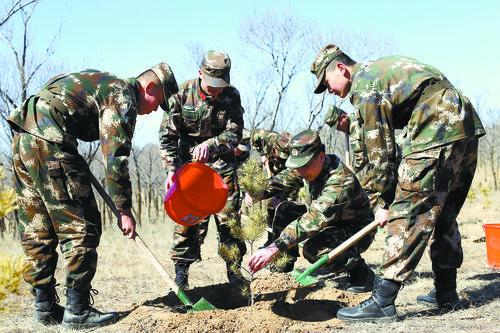“駐守一方,植綠一片。部隊(duì)移防到哪里,就讓綠色扎根到哪里。”凍土再厚,也會(huì)被官兵的熱情融化;山脊再高,也高不過官兵對第二故鄉(xiāng)美麗風(fēng)景的守望期待和傾心建設(shè)。廣大官兵在很多被稱為“生命禁區(qū)”的地方創(chuàng)造出“綠色奇跡”。據(jù)統(tǒng)計(jì),2012年以來,全軍共出動(dòng)兵力160萬余人次、動(dòng)用機(jī)械車輛7.2萬臺(tái)余次,種植喬灌木1200萬余株,種草和恢復(fù)植被720萬余平方米,造林綠化面積達(dá)20萬余畝,他們用實(shí)際行動(dòng)為美麗中國打造出一張張“軍綠名片”。