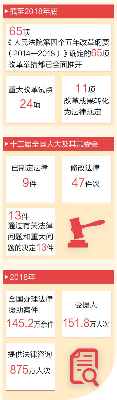 黨的十九大報(bào)告指出,全面依法治國是國家治理的一場深刻革命,必須堅(jiān)持厲行法治。在以習(xí)近平同志為核心的黨中央堅(jiān)強(qiáng)領(lǐng)導(dǎo)下,法治建設(shè)成果豐碩,人民群眾獲得感進(jìn)一步增強(qiáng)。從司法體制綜合配套改革到智慧法院建設(shè),從掃黑除惡專項(xiàng)斗爭到以審判為中心的刑事訴訟制度改革,法治領(lǐng)域改革不斷推進(jìn)。代表委員們一致認(rèn)為,如今人民群眾對美好生活的向往更多向民主、法治、公平、正義、安全、環(huán)境等方面延展,必須打造公正司法,努力讓人民群眾在每一個司法案件中感受到公平正義。