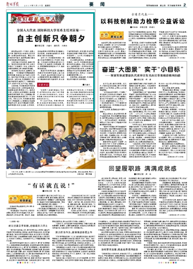 參加兩會(huì)前的一個(gè)周末,全國人大代表、國防科技大學(xué)某系主任劉京菊一如既往來到實(shí)驗(yàn)室。最近幾年的周末和節(jié)假日,她把很多精力都花在研制某重點(diǎn)型號(hào)裝備上。記者問她為何這樣拼,她脫口而出:“現(xiàn)在科技發(fā)展日新月異,必須只爭朝夕!”不經(jīng)意的一句話,反映出劉京菊在創(chuàng)新路上努力奔跑的緊迫感。