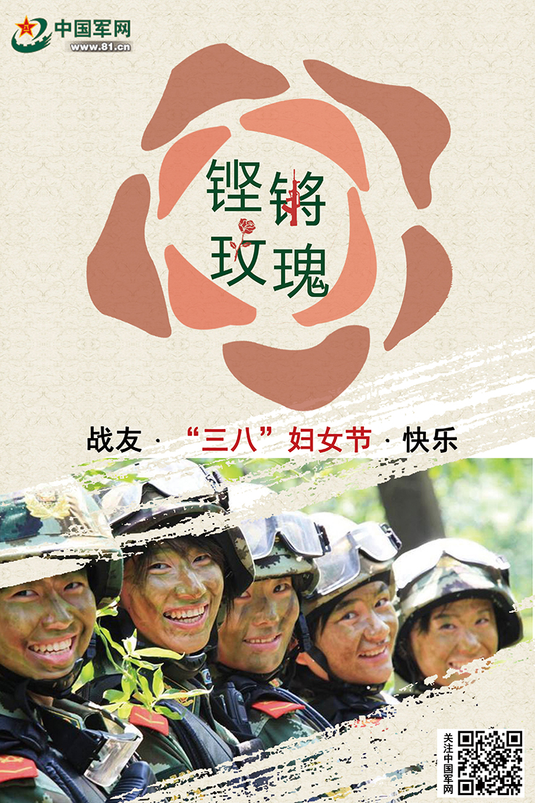 又一個(gè)春天,“三八”國(guó)際婦女節(jié)向我們走來。中國(guó)軍網(wǎng)用一幅海報(bào)向軍營(yíng)中的鏗鏘玫瑰送去誠(chéng)摯的節(jié)日祝福:祝愿你們的青春一路向陽、絢爛綻放!