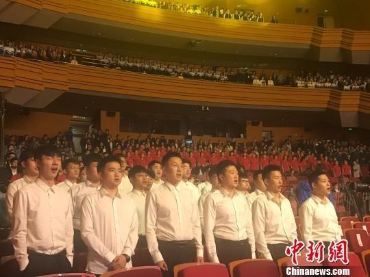 現(xiàn)場(chǎng)大合唱歌曲《我愛(ài)你中國(guó)》。 楊靜 攝