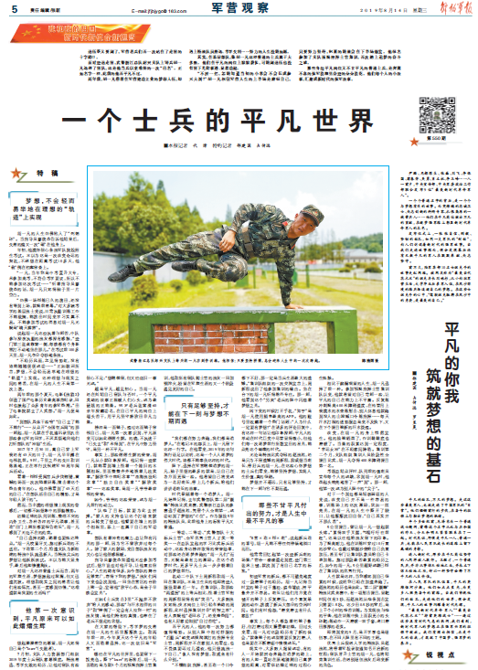 那些身處平凡崗位又不甘平凡的普通士兵,是奔流不息的強(qiáng)軍浪潮里奮進(jìn)的朵朵浪花。他們每個(gè)人的小故事,匯聚成新時(shí)代的強(qiáng)軍故事。請(qǐng)關(guān)注今日《解放軍報(bào)》的報(bào)道——