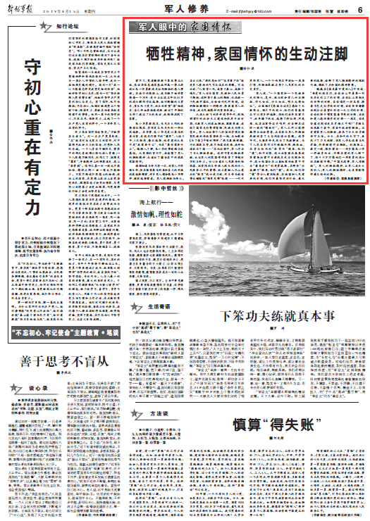 魏巍在《誰是最可愛的人》中寫道:“親愛的朋友們,當你坐上早晨第一列電車走向工廠的時候,當你扛上犁耙走向田野的時候,當你喝完一杯豆?jié){、提著書包走向學校的時候,當你安安靜靜坐到辦公桌前計劃這一天工作的時候,當你向孩子嘴里塞著蘋果的時候,當你和愛人悠閑散步的時候……朋友,你是否意識到你是在幸福之中呢?”幸福生活來源于奮斗,有奮斗就會有犧牲。正是前輩軍人的犧牲,換來了今天的幸福安寧生活。今天,在和平的天空下,雖然少了刀光劍影,但軍人并未遠離生死考驗,仍要繼續(xù)作出犧牲。訓練場上、救災一線、維和前沿……許多像朱小華一樣挺身而出、沖鋒在前的軍人倒下了,但千千萬萬像他們一樣英勇的戰(zhàn)士還在繼續(xù)沖鋒。“中國無戰(zhàn)事,軍人有犧牲”。軍人的犧牲精神,讓軍人成為大寫的人;軍人的犧牲精神,也是家國情懷最生動的注腳。