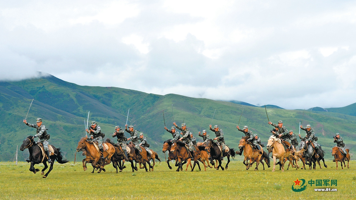 尼都塔生帶領(lǐng)連隊(duì)官兵進(jìn)行乘馬沖擊訓(xùn)練。