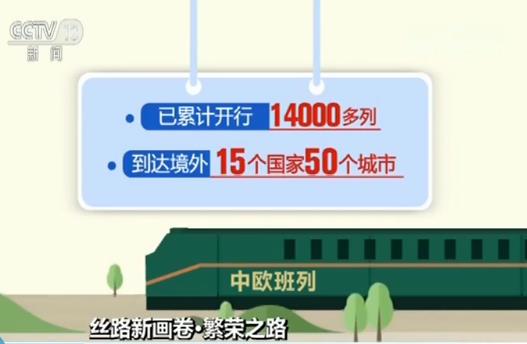 截止今年2月底,中歐班列已累計開行14000多列,通達(dá)境外15個國家50個城市。截止今年初,我國與共建“一帶一路”國家貨物貿(mào)易總額超過6萬億美元。