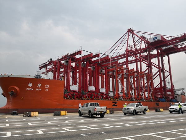 3月17日,“振華29”停靠在科倫坡港。(圖片由上海振華重工提供)