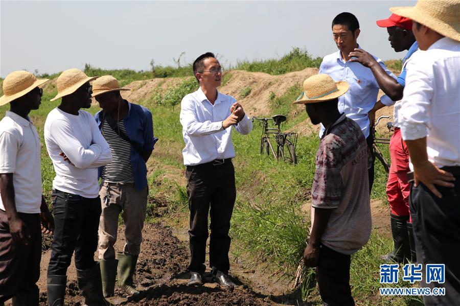 3月12日,在布隆迪西北部布班扎省寧加村,中國援助布隆迪農業(yè)專家組專家在中國雜交水稻示范田指導當?shù)剞r業(yè)技術員。 新華社記者呂天然攝