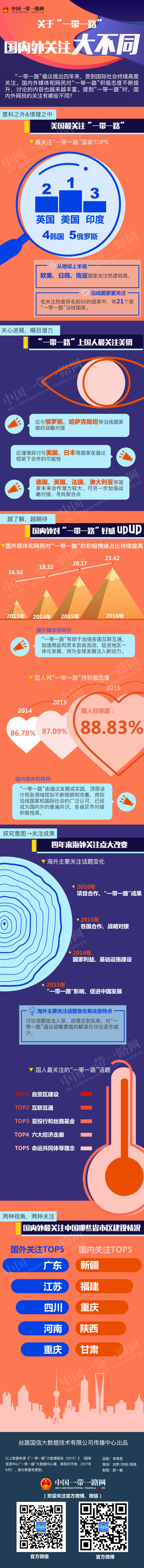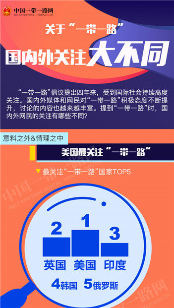 “一帶一路”倡議提出四年來,受到國際社會持續(xù)高度關(guān)注。國內(nèi)外媒體和網(wǎng)民對“一帶一路”積極態(tài)度不斷提升,討論的內(nèi)容也越來越豐富。提到“一帶一路”時,國內(nèi)外網(wǎng)民的關(guān)注有哪些不同?