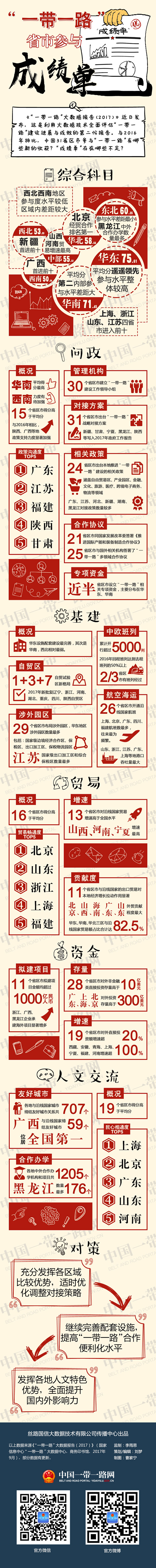 《“一帶一路”大數(shù)據(jù)報(bào)告(2017)》近日發(fā)布,這是利用大數(shù)據(jù)技術(shù)全面評(píng)估“一帶一路”建設(shè)進(jìn)展與成效的第二份報(bào)告。與2016年相比,中國31省區(qū)市參與“一帶一路”有哪些新的收獲?“成績單”存在哪些不足?
