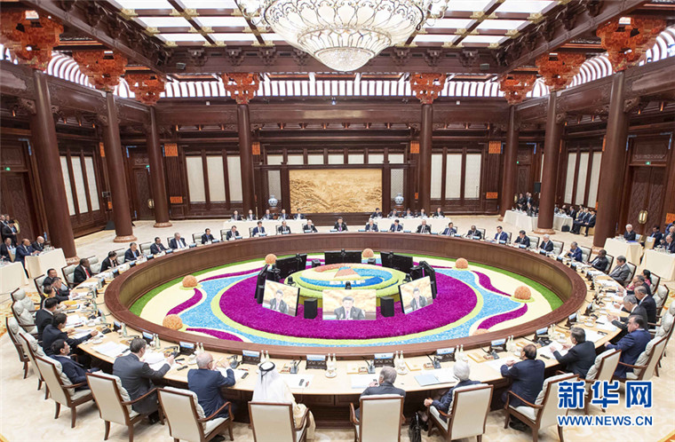 4月27日,第二屆“一帶一路”國際合作高峰論壇在北京雁棲湖國際會議中心舉行圓桌峰會,國家主席習近平主持會議并致開幕辭。 新華社記者 李濤 攝