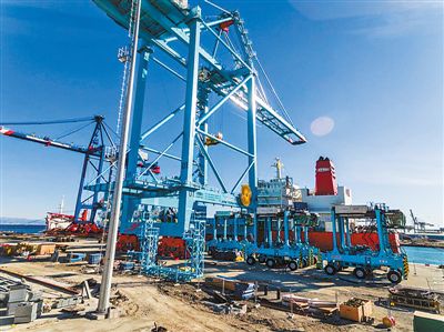2018年12月,集裝箱碼頭采購(gòu)的首批設(shè)備第二船機(jī)械設(shè)備到港。瓦多碼頭控股公司供圖 制圖:王 婷