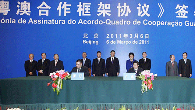 2011年,全國兩會期間,粵澳在京簽署《粵澳合作框架協(xié)議》,涉及九大產(chǎn)業(yè)的全面深化合作,明確在橫琴給澳門提供5平方公里粵澳合作產(chǎn)業(yè)園,還有橫琴諸多優(yōu)惠政策的綱領(lǐng)性內(nèi)容。