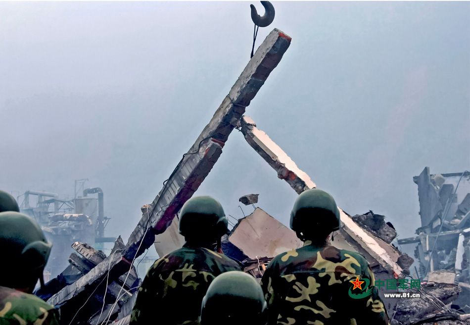中國(guó)軍人奮戰(zhàn)在汶川(組照之一)。譚超攝影
