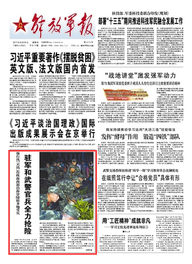 武警廣東總隊(duì)根據(jù)地方黨委政府統(tǒng)一部署,出動(dòng)950名官兵擔(dān)負(fù)珠海、江門、中山等地路障清理任務(wù)。