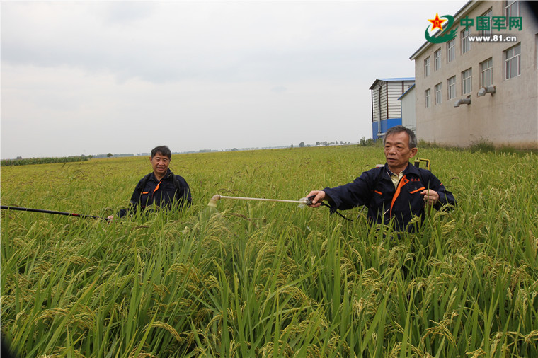 兩個(gè)老兵在用SOD菌種給水稻接種。
