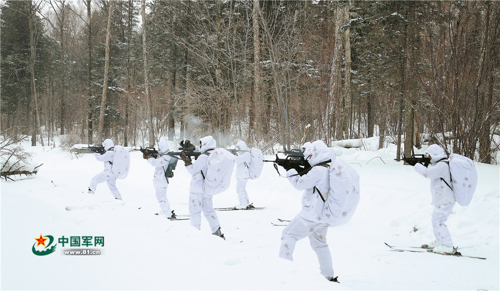 特戰(zhàn)分隊(duì)長(zhǎng)途雪地行軍練打仗。