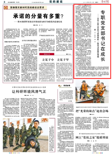 一紙命令下達,調(diào)整改革后的空軍工程大學,一批批教學骨干走馬上任成為教研一線黨支部書記。與以往不同的是,這次大學創(chuàng)新教研室主任、書記“分任制”,所有書記均為專職。思想在破冰,成效在顯現(xiàn),一張張新答卷令人欣喜。