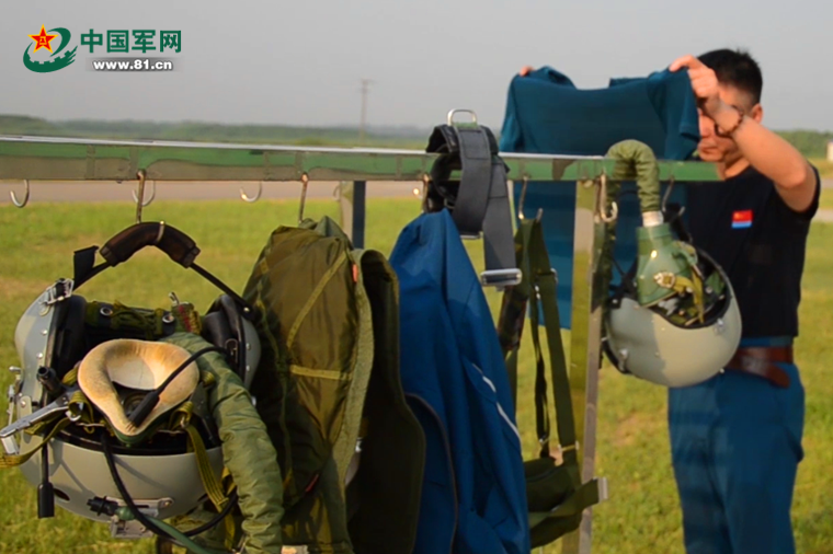 飛行訓(xùn)練結(jié)束后,飛行員在“晾”衣服。