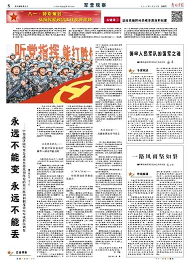 在喜迎中國人民解放軍建軍91周年的日子里,《解放軍報》推出“八一·特別策劃——弘揚我軍政治工作優(yōu)良傳統(tǒng)”系列觀察,系統(tǒng)關注全軍部隊傳承紅色基因、弘揚政治工作優(yōu)良傳統(tǒng)的新探索、新經(jīng)驗、新思考,展現(xiàn)新時代政治工作的生命線之花在新起點新征程上綻放,生命線之根在“十一個堅持”優(yōu)良傳統(tǒng)上深扎的風采。解放軍報編輯部特約軍事科學院軍隊政治工作研究院專家,從理論層面和軍史視野對這11個優(yōu)良傳統(tǒng)進行深度解讀。敬請關注!