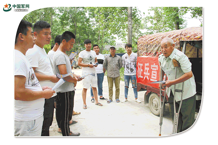 馮登貴給適齡青年講征兵政策,身后便是他那輛“征兵宣傳車”。董 偉、孫 碧攝