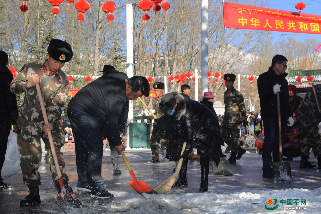 戰(zhàn)士與市民共同在宗角祿康公園內(nèi)除雪。