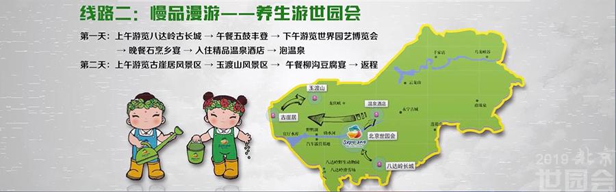 2019北京世園會精品旅游線路隆重發(fā)布,首推的三條北京世園會精品旅游線路。“美食美攝——暢爽游世園會”:來2019北京世園會,邀您暢爽游園,登八達嶺長城,嘗延慶特色小吃,品全球園藝美食,宿露營酒店,在世園絢爛景致和深邃星空下暢游古今;“慢品漫游——養(yǎng)生游世園會”:來2019北京世園會,邀您養(yǎng)生游園,賞世界園藝之博大,踏古長城,看古人舊居,體驗溫泉療養(yǎng),品世園田園夢,醉氧山水間;“歡樂時光——親子游世園會”:來2019北京世園會,邀您親子游園,遠離工作喧囂,攜同家人回歸自然, 游憩田埂果嶺,聆聽自然之聲,在燕語鶯歌,桃紅柳綠間不負好時光。