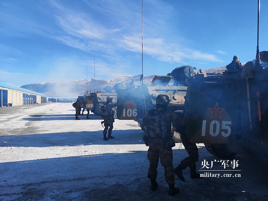 官兵迅速登上戰(zhàn)車。