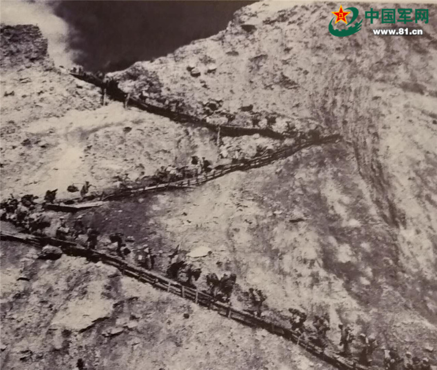 進(jìn)藏部隊(duì)翻越雪山,向太昭進(jìn)軍。(軍史館供圖,中國(guó)軍網(wǎng)記者喬楠楠翻拍)