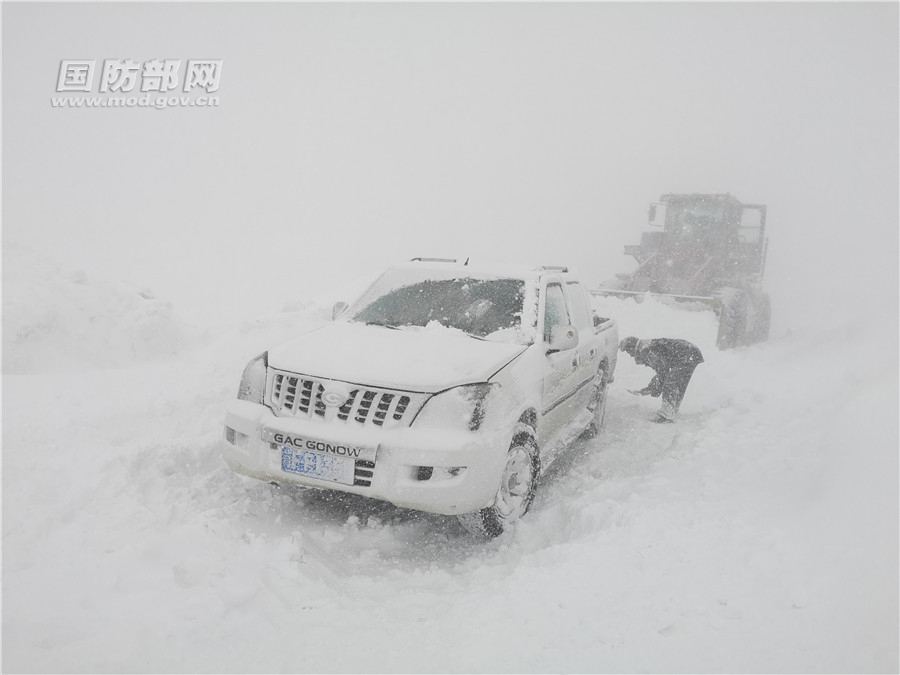 截止21日17時,救援官兵累計清除路面積雪9千余方,清理道路174公里,解救沿途被困車輛20輛,被困人員56人。(楊桐、陸文凱、王邦躍、羅斐、席培順 攝影報道)