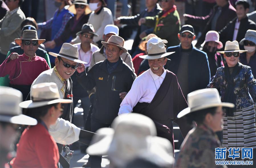 宗角祿康公園內(nèi)跳鍋莊的拉薩市民(3月10日攝)。新華社記者 李鑫 攝