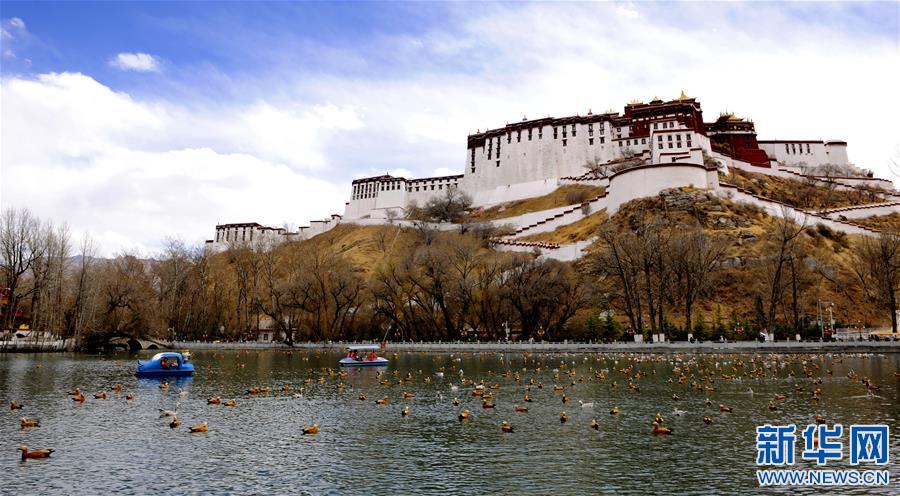 三月的拉薩桃花初綻,人們漫步在布達(dá)拉宮腳下的龍王潭公園,享受著明媚的春光。