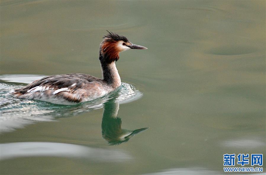 一只鳳頭??在拉薩龍王潭公園的水面上游弋(3月14日攝)。新華社記者 張汝鋒 攝